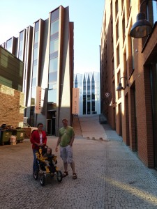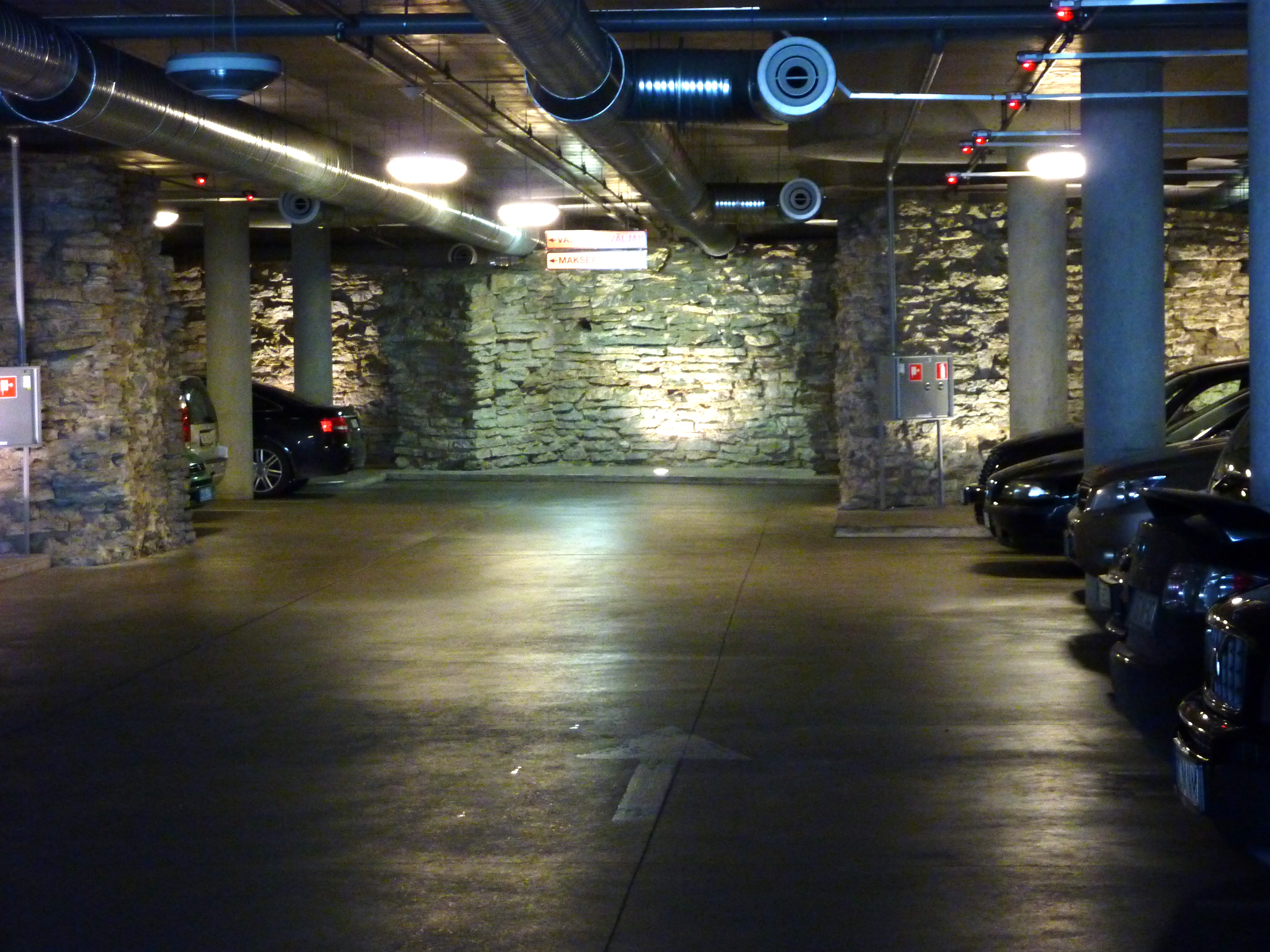 has designed some of these buildings. While in Tallinn, we parked our car underneath a large square (Independence Square of Vabaduse Väljak) where is located the large new monument commemorating the Independence War (Vabaduse Sõda ) and one of Tallinn’s oldest churches – St. John’s Church (Jaani Kirik). An interesting aspect regarding the underground parking structure is that while doing the excavations for it, more parts and alley ways of the old city wall were uncovered. The city maintained parts of the excavations and incorporated them into the parking structure. Everything is being kept very clean here – no graffitti in the structure nor litter to be seen. When we walked out of the underground parking structure, a woman was washing the parking structure’s windows. I don’t recall seeing that happening in our parking structures in