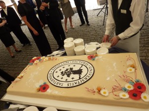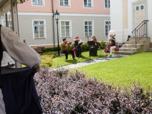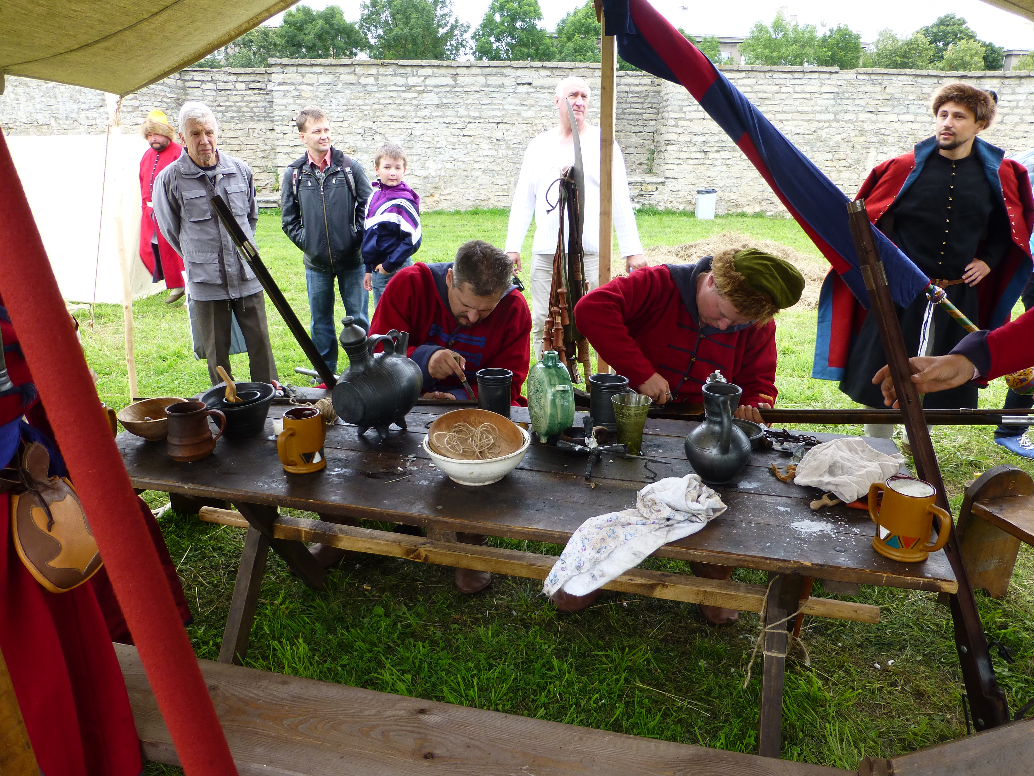 We continued on to Narva and to the border with Russia. Just before the border gates, we make a right hand turn to go to the old castle. The large old fortifications exist on the banks of the Narva River, both on the Estonian and Russian side of the river. On a the day that we were there, there was to be a reenactment of a medieval battle between the Swedish and Russians. Quite a few were dressed in the dress of that time and exhibits were set up of food, dress, and military tents used in that period. We climbed around the old fort, as well as followed circular steps going to a top tower and observation post overlooking the river and countryside. Interesting to me was to see a large statue of Lenin with an arm upraised and pointing off into the distance. It most likely used to be in a prominent position in a central city square. It was now set in a rather obscure position in a small corner of the fort where when you walk into the fortification, one’s back would be facing it and would not really see it, unless you turn around. I asked why Estonia had kept the monument at all? Dr. Everaus answered it was still a part of Estonia’s history. Unfortunately, it remains as a reminder of of a very bleak time in Estonian’s history of being occupied.