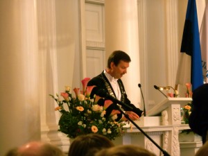 In the early part after our arrival in August, on a beautiful sunny Sunday Dr. Everaus and her son invited Juri and I to come with them to see the city of Narva at the northeastern part of the country. The city is situated right across the border from Russia and has probably the largest Russian population than other Estonian cities. On the way there we also stopped at Sillamäe that was a “closed” city during the Soviet occupation. What is meant by a closed city I learned, is that it was not shown on any of the maps of Estonia or Russia, people could not go there without special permits. A post office did not even exist there. It was as if the city did not exist, although thousands lived there and worked at the chemical plants and nuclear facility located there. It was a planned city, built in the early 1950’s from the ground up. When one visits Sillamäe in the present day, one immediately sees that the architecture is different from buildings seen in the rest of Estonia. The city center not far from the sea and has somewhat an mediterranean appearance. Large boulevards fan out from the center with trees planted in rows. The trees are now around 60 years old. We drove around and saw in the distance the large port from which products were shipped back to the former Soviet Union. As one drives out of the city, we pass the typical grey colored, block apartment houses where the workers live.